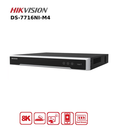 Hikvision DS-7716NI-M4 32MP 8K 16 Channel NVR - No POE Ports The Hikvision DS-7716NI-M4 is a powerful NVR that can record IP cameras at 32MP resolu...